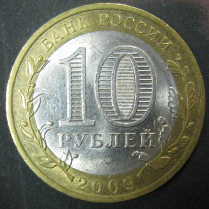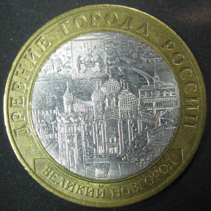 Биметалл 10 рублей 2009, Великий Новгород, СПМД, 1 монета из обращения
