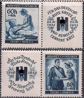 Богемия и Моравия (Рейх) 1940 год. Красный Крест. 2 марки + купоны
