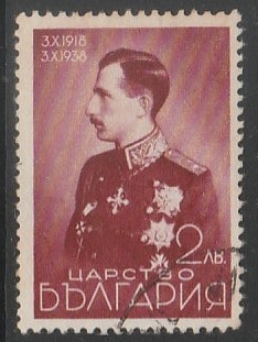 Болгария 1938 год. 20 лет вступления на престол царя Бориса III, ном. 2 L, 1 марка из серии (гашёная)