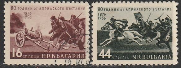 Болгария 1956 год. 80 лет Апрельскому восстанию против турок, 2 гашёные марки