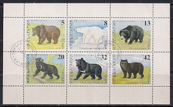 Болгария 1988 год. Медведи. 1 гашёный малый лист