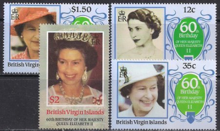 Британские Вирджинские острова 1986 год. 60 лет со дня рождения Елизаветы Второй. 4 марки