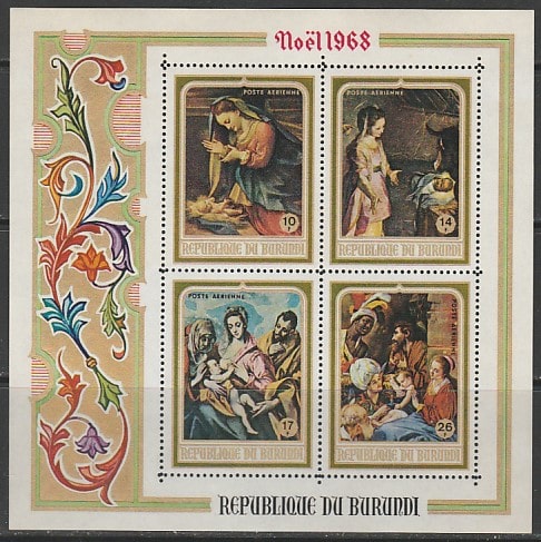Бурунди 1967 год. Рождество. Сцены из Нового Завета, блок.