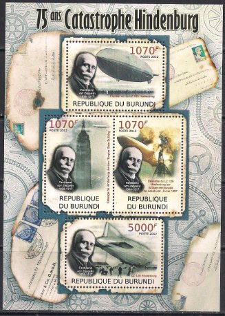 Бурунди 2012 год. Дирижабли. Малый лист 10м