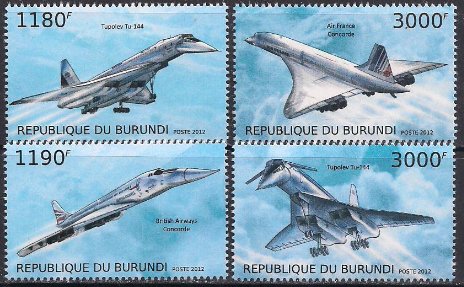 Бурунди 2012 год. Самолеты. 4 марки 10м