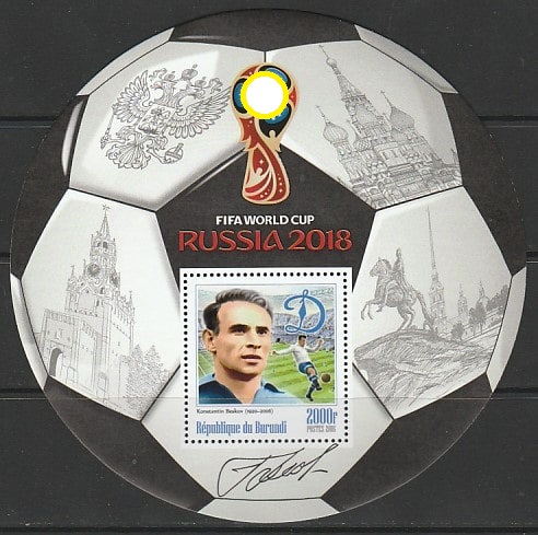 Бурунди 2016 год. Советский футболист, тренер К.И. Бесков, блок.