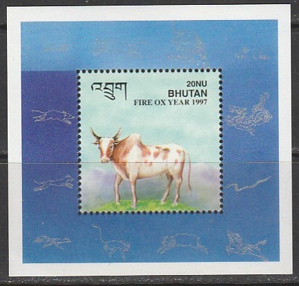 Бутан 1997 год. Китайский Новый год. Год Быка, блок. (2,2)