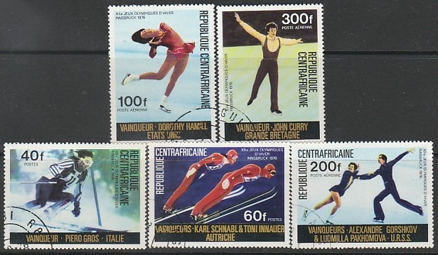 ЦАР 1976 год. Медалисты зимних Олимпийских игр в Инсбруке, 5 марок (гашёные)