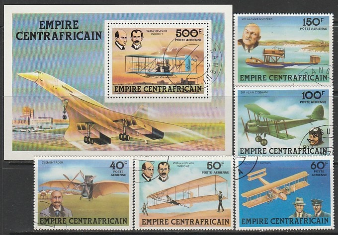 ЦАР 1978 год. История авиации. Братья Райт, 5 марок + блок (гашёные)