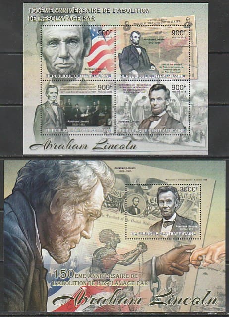 ЦАР 2013 год. Авраам Линкольн. 150 лет отмены рабства, малый лист + блок.