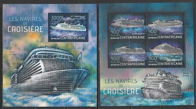ЦАР 2013 год. Круизные лайнеры, малый лист + блок.