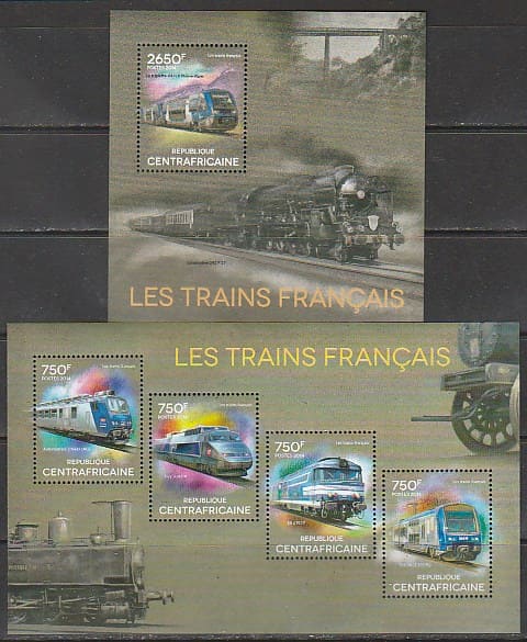 ЦАР 2014 год. Локомотивы Франции, малый лист + блок.