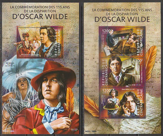 ЦАР 2015 год. 115 лет со дня смерти Оскара Уайльда, малый лист + блок.