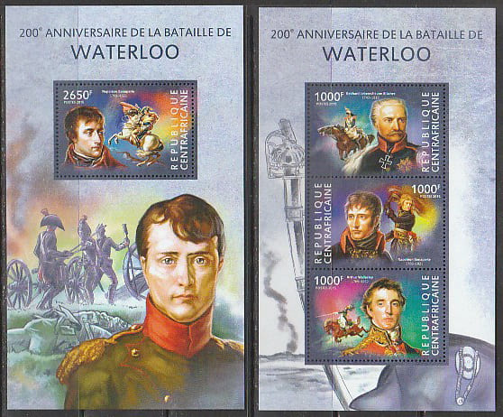 ЦАР 2015 год. 200 лет битве при Ватерлоо, малый лист + блок.