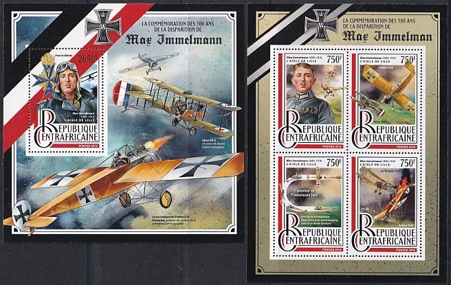 ЦАР 2016 год. Макс Иммельманн, малый лист + блок