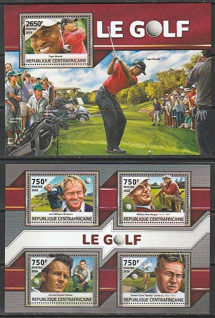 ЦАР 2016 год. Спорт. Гольф. Спортсмены, малый лист + блок.