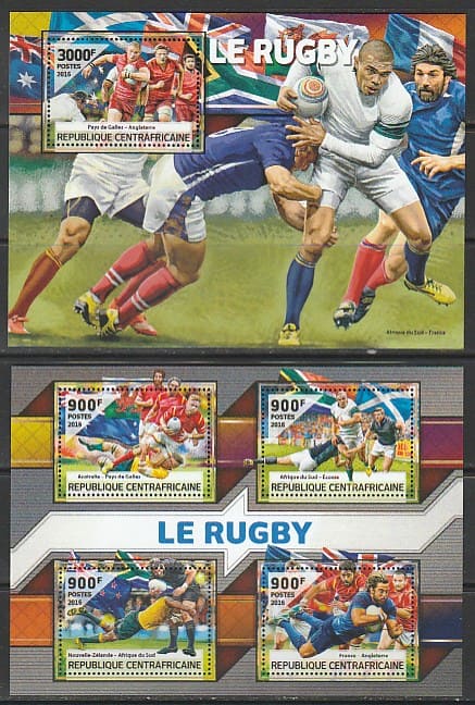 ЦАР 2016 год. Спорт. Регби, малый лист + блок.