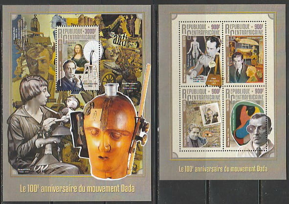 ЦАР 2016 год. Столетие художественного движения дадаизма, малый лист + блок.