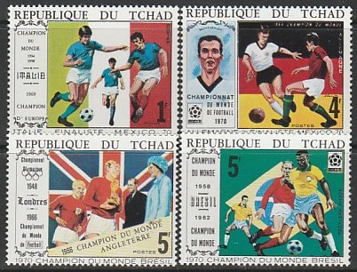 Чад 1970 год. Страны - победители чемпионатов мира по футболу, 4 марки.