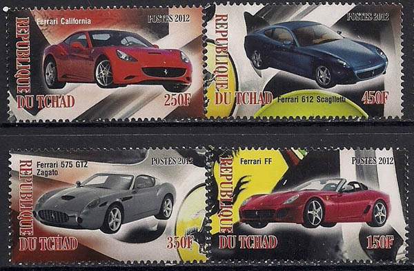 Чад 2012 год. Автомобили "Феррари". 4 марки