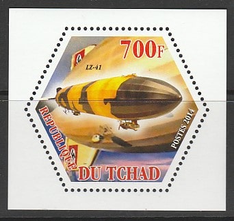 Чад 2014 год. Немецкий дирижабль LZ-41, блок.