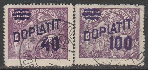 Чехословакия 1926 год. Аллегория науки и экономики, надпечатка, 2 доплатные марки из серии (гашёные) (2 из 9)