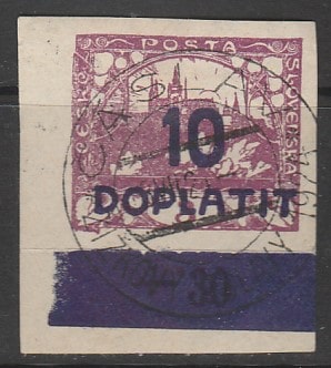 Чехословакия (ЧССР) 1923 год. Пражские соборы, надпечатка, ном. 10/3 Н, 1 марка из серии (гашёная) (1 из 5)
