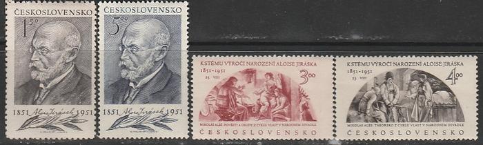 ЧССР 1951 год. 100 лет со дня рождения писателя Алоиза Ирасека, 4 марки