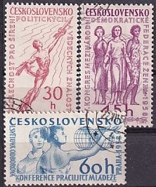 ЧССР 1958 год. I Международная конференция Союза Молодёжи, 3 гашеные марки