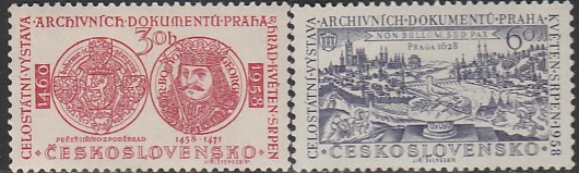 ЧССР 1958 год. Выставка архивных документов, 2 марки