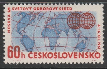 ЧССР 1961 год. V Международный конгресс профсоюзов, 1 марка (наклейка)