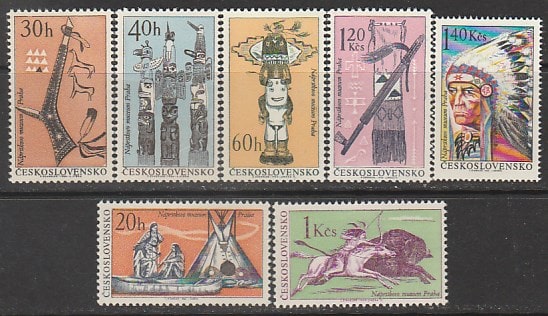 ЧССР 1966 год. Выставка "Индейцы Северной Америки", 7 марок (наклейка) (4,5/2,5)