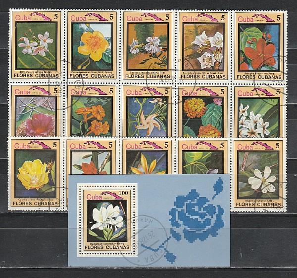 Цветы, Куба 1983, 15 гаш. марок сцепки + блок