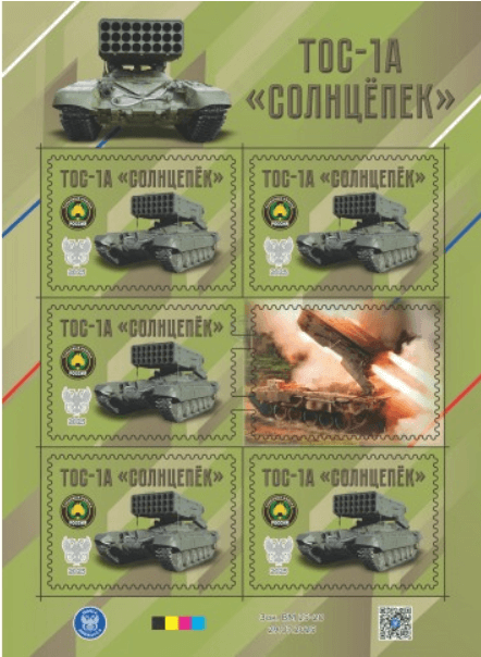 ДНР 2025 год. Малый лист виньеток Техника СВО. ТОС-1А "Солнцепёк" (356