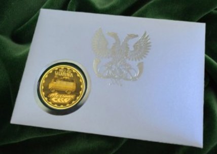 На аверсе ПД ММ № 33 в зубчатом колесе, символизирующем техническое совершенство, изображен легендарный автомобиль СВО, на счету которого тысячи спасенных человеческих жизней – УАЗ «БУХАНКА».
