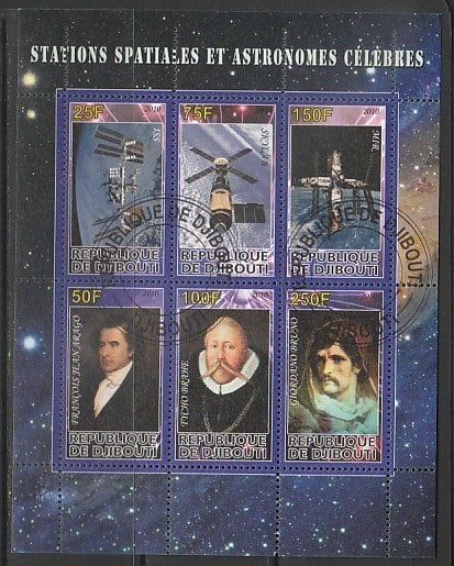 Джибути 2010 год. Космос. Спутники и астрономы, малый лист (гашёный)