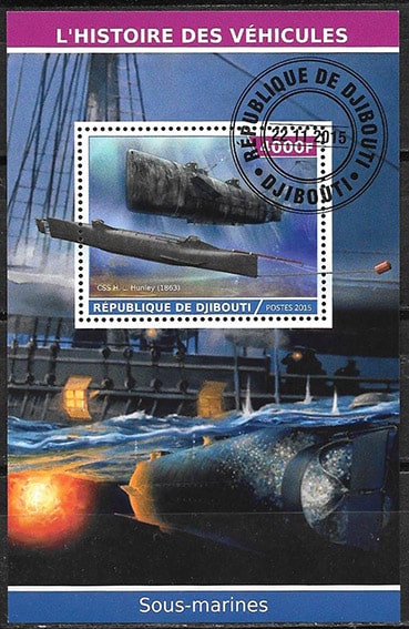 Джибути 2015 год. Подводные лодки, гашеный блок