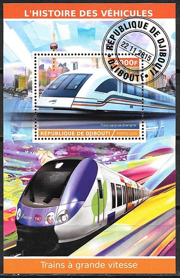 Джибути 2015 год. Скоростные поезда, гашеный блок
