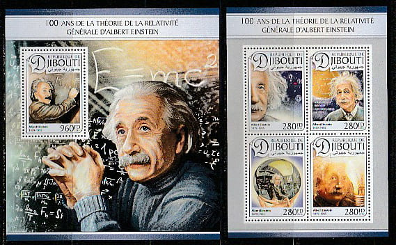 Джибути 2016 год. 100 лет теории относительности Альберта Эйнштейна, малый лист + блок.