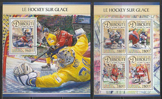 Джибути 2016 год. Чемпионат мира по хоккею с шайбой в России, малый лист + блок.