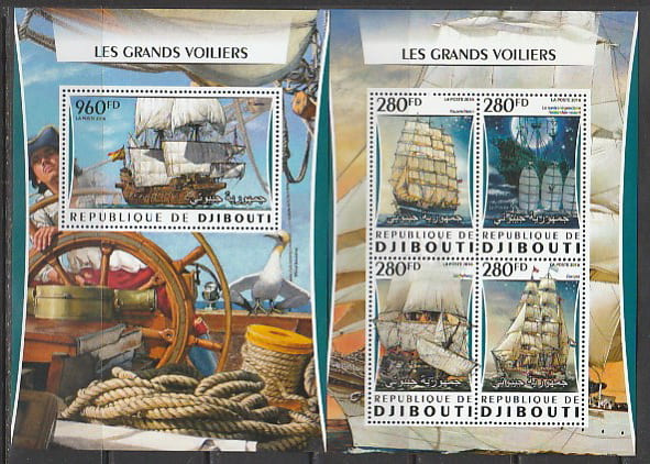 Джибути 2016 год. Парусники, малый лист + блок.