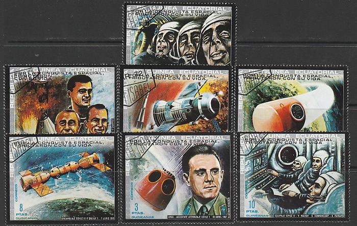 Экваториальная Гвинея 1972 год. Аварии в космосе и погибшие космонавты. 7 гашёных марок (ю)