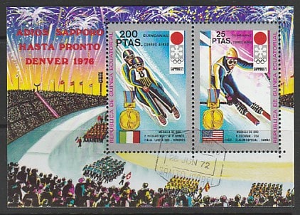 Экваториальная Гвинея 1972 год. Зимние Олимпийские игры в Саппоро. Медалисты, блок (гашёный)