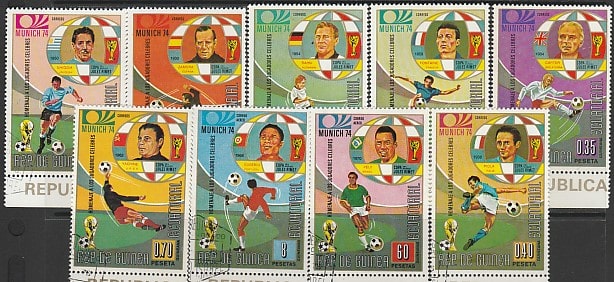 Экваториальная Гвинея 1973 год. Чемпионат мира по футболу в Германии 1974 года. Футболисты, 9 марок (гашёные).