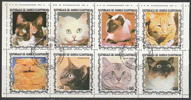 Экваториальная Гвинея 1978 год. Домашние кошки, 8 гашёных марок (непочтовые)