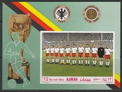 Эмират Аджман 1969 год. Сборная Германии по футболу, б/зубц. блок. (7)