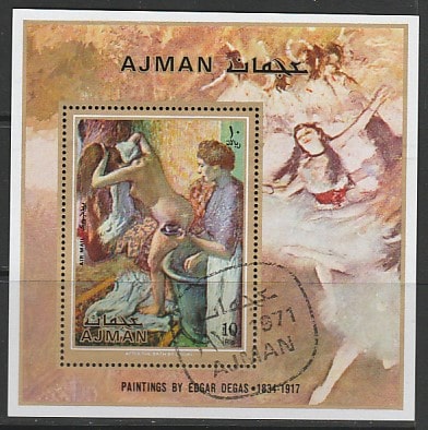 Эмират Аджман 1971 год. Эдгар Дега "После ванны", блок (гашёный)