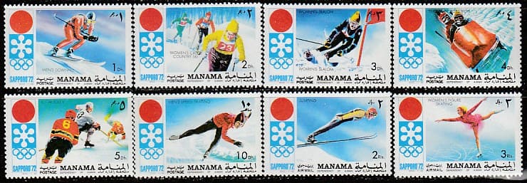 Эмират Аджман (Манама) 1971 год. Зимние Олимпийские игры в Саппоро, 8 марок.