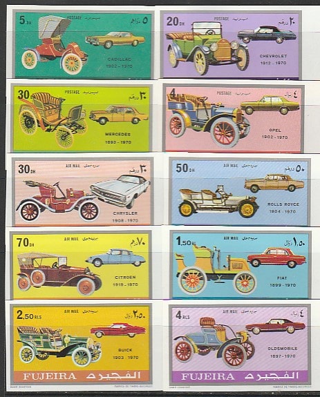 Эмират Фуджейра 1971 год. Автомобили, 10 б/зубц. марок.