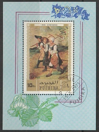Эмират Фуджейра 1971 год. Питер Брейгель "Уборка сена", блок (гашёный)